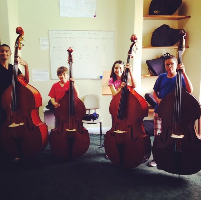 Ele toca contrabaixo e violoncelo com maestria.